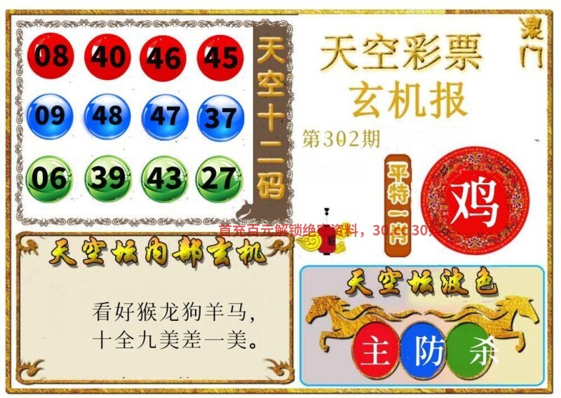| 307期:绝杀三肖【鼠羊马】开:發00准 |